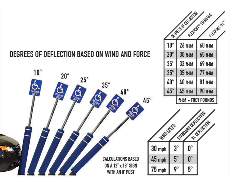 Don't be afraid of a car damaging or even possibly breaking your post. In parking lots, nothing works better to resist vehicle impacts then a FlexPost® Sign System. Even if a car comes too close, these flexible sign posts bend and don’t break.