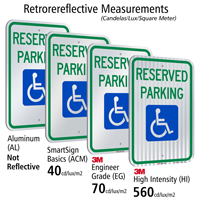 • Accessible parking signs feature 3M's reflective films and inks on durable, rustproof aluminum.