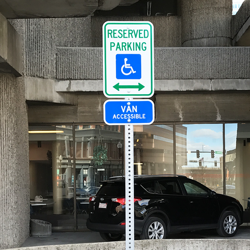 Our line of accessible parking signs complies with applicable state and federal laws. Use our products to mark accessible parking spaces and comply with the ADA.