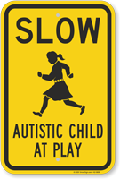 Inform people to drive carefully for people with special needs.Autistic Child at Play Signs at crucial spots on the streets will keep fast-moving traffic under control and our children safe. Proven effective signs will help create a safer neighborhood.