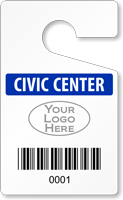 Scan these Barcode Parking Permits with any portable scanner or a SmartPhone. Identify a vehicle in seconds. Extra large barcodes can be scanned from a distance or through most window glass. Find two types of barcode permits: Barcode Mirror Hang Tags and Barcode Window Decals.