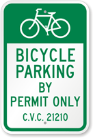 California Bike Parking Sign: Bicycle Parking By Permit Only C.V.C 21210 (With Bicycle Graphic) K-9500 Learn More...