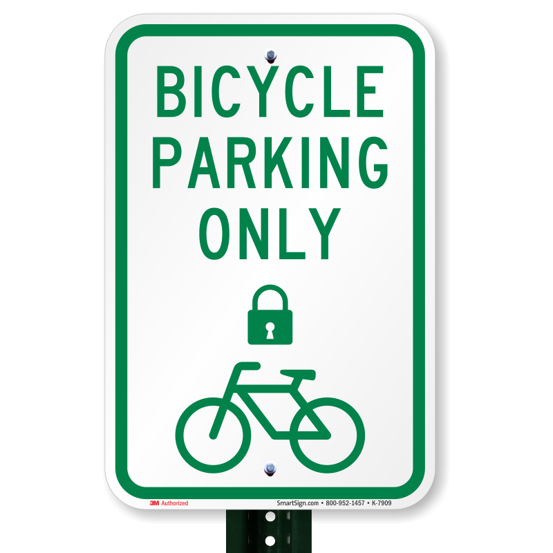 If the parking area is meant for bicycles only, post this Bicycle Parking sign and make it known to all. Clear message and cycle and lock symbol acts as an effective reminder for cyclists to keep their vehicles locked.
