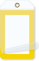 Size: 1.75" x 3.25" Material type: Self-Laminating Tag, 10 mil Vinyl and Clear Flap