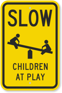 Slow Children At Play With Graphic Sign – Slow Down Sign