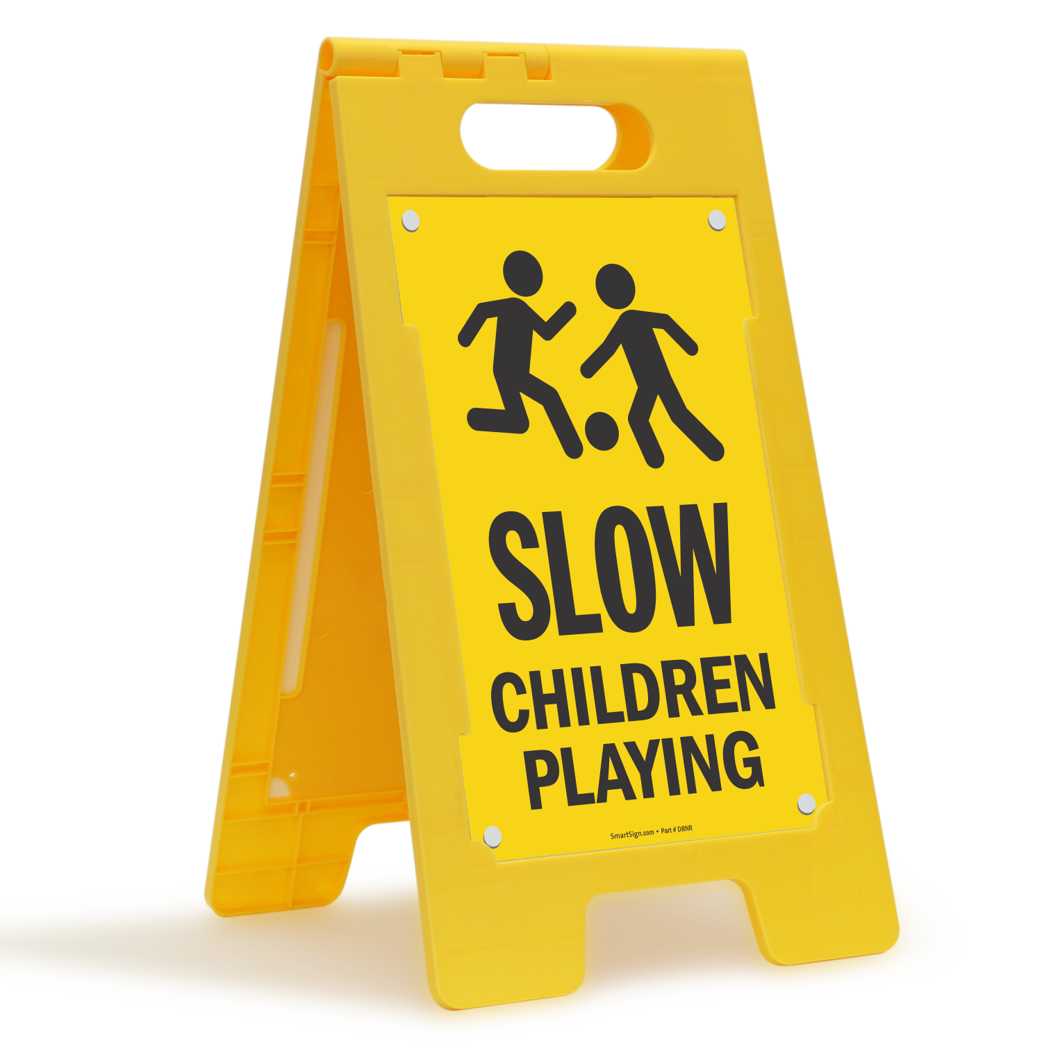 Request drivers to keep a check on their speed as they drive pass the children’s playing area. Use this free-standing floor sign to display your message.