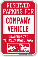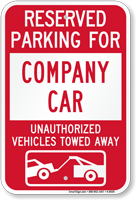Save a spot for your company car with company parking signs. A strong message also prevents unauthorized parking on your premises. Great for rental offices or businesses with a lot of employees on the go.