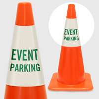 Yes, many cone collars are available with reflective backgrounds or text to ensure they remain visible to drivers in low-light or nighttime conditions. Reflective cone collar parking signs meet visibility standards recommended by the MUTCD for temporary traffic control devices.