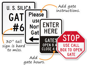 You can fully customize the surface of your custom gate sign to maximize functionality and include vital information.