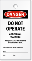 • • Find both OSHA and ANSI based designs. The custom lockout tags below are easy to complete. Just add your own text.