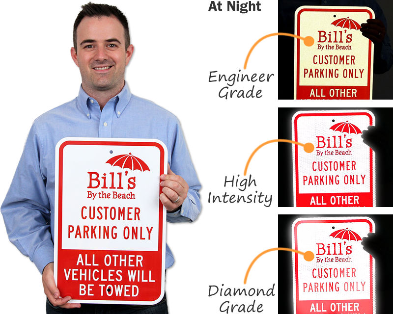 Absolutely. We offer custom reserved parking signs in three distinct grades of reflectivity to ensure visibility in all lighting conditions.