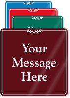 Designer Palladio Signs are made of thick, rust-proof, and durable aluminum. Most templates are made on 80 mil thick metal. Designer signs showcase architectural elegance that is blended well with durability. Signs have an architectural cutout on top. Each sign has rounded, burr-free corners and pre-drilled holes.