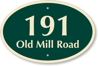 Designer Palladio Signs are made of thick, rust-proof, and durable aluminum. Most templates are made on 80 mil thick metal. Designer signs showcase architectural elegance that is blended well with durability. Signs have an architectural cutout on top. Each sign has rounded, burr-free corners and pre-drilled holes.
