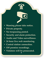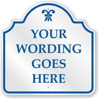Designer Palladio Signs are made of thick, rust-proof, and durable aluminum. Most templates are made on 80 mil thick metal. Designer signs showcase architectural elegance that is blended well with durability. Signs have an architectural cutout on top. Each sign has rounded, burr-free corners and pre-drilled holes.