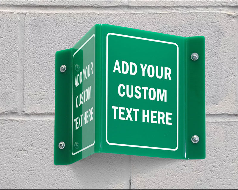 Ensure clear wayfinding with this double-sided projecting sign, designed for high-traffic areas like hallways and corridors, perfect for hospitals, offices, schools, and warehouses.