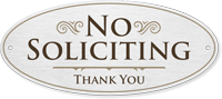 No Soliciting Signs for Door are sure to discourage solicitation inside your facility. Keep your facility secure. Prevent unwanted solicitors from disrupting your work and, worse, harassing your guests and employees.