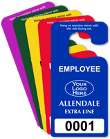 In addition to our white background Employee Parking Permits, we offer 10 assorted colors! You may choose from red, blue, light blue, green, orange, purple, black, burgundy, brown, and yellow. These color options make the perfect visual communication tools for situations where one may need segregation, like for identifying ADA parking users, temporary staff, management, and so on.