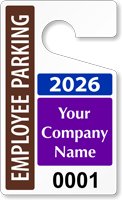 Our ValueTag Employee Parking Permits present the more economical parking control solution. These are our most affordable yet surprisingly durable tags made using 15 mil thick plastic and printed digitally. On the other hand, the ToughTag Employee Parking Permits are made of 30 mil thick plastic and embedded graphics. Compared to ValueTag, ToughTags cost more but are built to last for over three years.