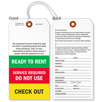 Equipment inspection tags provide a discipline to your periodic inspections and check-off lists. Hang them in a spot that workers will see and readily update. A record that is used alongside of equipment – is mostly likely to be updated and, more importantly, heeded! Equipment Servicing Tags remind employees that equipment inspection is a critical component to your safety program and avoid risks that can lead to unexpected or untimely breakdowns when time is of the essence.