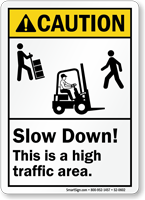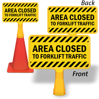 Forklifts are a major cause of industrial accidents. Safeguard your employees against this hazard with the help of preventative Forklift Traffic Signs. Warn pedestrians and other people on the floor of forklift traffic and create a cautious environment. Mark forklift movement zones to ensure safety and bring order to the facility.