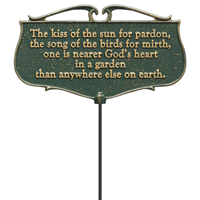 Add a decorative touch to your lawn, garden, or yard with our handcrafted GardenBoss™ signs. Cast from aluminum with bold embossed inscriptions that display classic messages, warnings, and poems clearly with a dash of flair. So whether your creating a welcoming atmosphere, or detering pesky interlopers, our easy stake signs add the finishing touch to any home or garden.