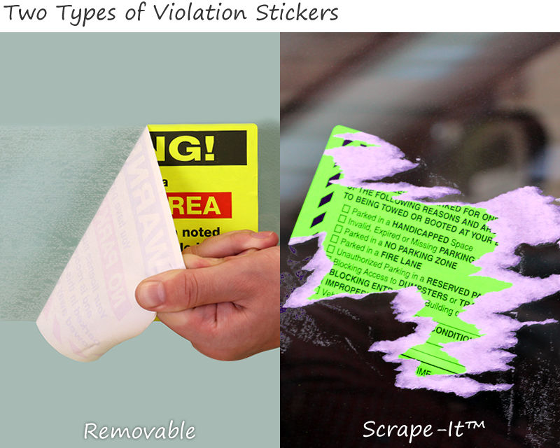 Yes, many are designed to be difficult to remove to act as a strong deterrent. They often use aggressive adhesives that break apart. However, we also offer removable violation stickers that peel off cleanly, offering a less confrontational warning.