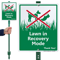 These LawnBoss® Keep Off Grass and Keep Off Lawn Signs come preassembled as 10" x 12" aluminum signs with 3' stakes. Property Managers love them!