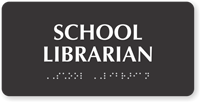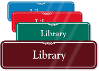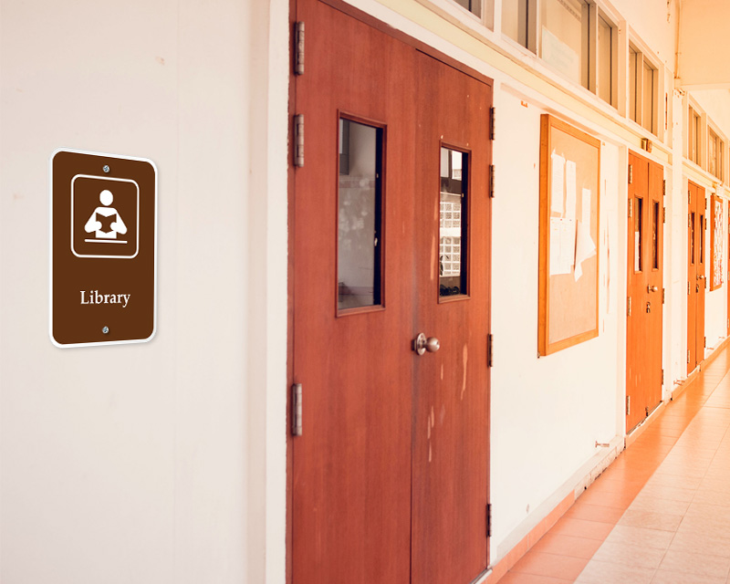• • Signs come in up to 16 different colors. 2-sided and Projecting Signs are perfect for long hallways, while Braille Library Signs ensure that your school is ADA compliant.