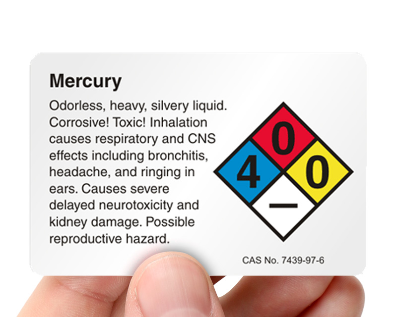 • Mercury labels have hazard identification system that is widely understood by workers, removing any linguistic barrier. Great for laboratories, hospitals, healthcare facilities, industrial plants, educational institutes, waste management and recycling centers, transportation and shipping.