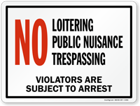 No-loitering signs can be used by individuals and businesses both. If you observe people gathering around your property for no apparent reason, it may be a good idea to post a no-loitering sign along with implementing other measures to deter loiterers. These signs provide reasonable grounds for the police to disperse the crowd and/or take any other relevant action.