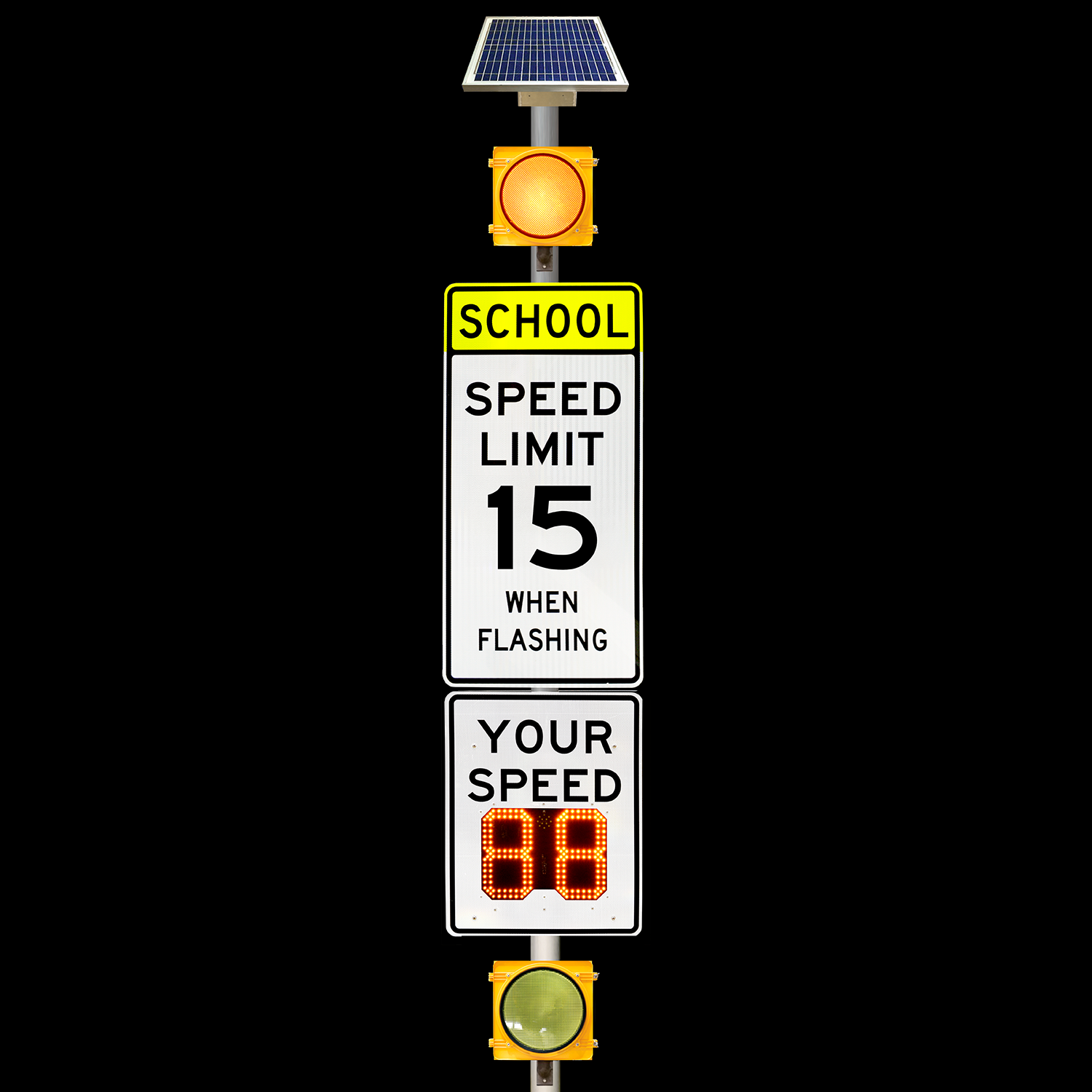 Maximize student safety with this heavy-duty, all-in-one traffic calming solution. This system combines dual 12" amber polycarbonate LED beacons with a 24" x 30" high-intensity reflective "Your Speed" sign, providing a dual-layered approach that ensures visibility through both active flashing and passive reflection. At its core is the Precision ER12 Radar, featuring a 12" display (5–99 MPH range) and a white strobe; it utilizes "smart violator" technology, such as customizable flashing and blanking modes, to specifically discourage dangerous "high-score" speeding behavior. Designed for total autonomy, the advanced 365-day programmable timer allows for a "set and forget" operation that follows your entire school year calendar, including holidays and early releases. This off-grid powerhouse is fueled by a sustainable 40-watt solar array and a high-capacity 55-amp 12V AGM battery, eliminating the need for expensive trenching or external power. Built to endure, the system features NEMA-rated enclosures, a lockable aluminum battery box, and a universal CTR-D1 mounting kit for secure installation on 4" poles.