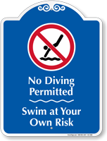 A. Our collection of “No Diving” signs has something to meet every requirement. We offer “No Diving” signs in English, Spanish, and English+Spanish (bilingual signs). You may choose from standard and designer options, or maybe create a custom sign in no time!
