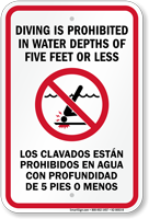 A. Our collection of “No Diving” signs has something to meet every requirement. We offer “No Diving” signs in English, Spanish, and English+Spanish (bilingual signs). You may choose from standard and designer options, or maybe create a custom sign in no time!