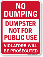 Choose a place that is most conspicuous. Mounting No Dumping Signs near the dumpster or at the entrance of the dumpster area on your property can be a good idea to get attention. You can even spray or paint your “No Dumping” message anywhere using our reusable stencils. Even our adhesive polyester labels can be applied directly to the dumpsters.