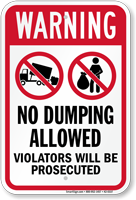 No Dumping Signs keep your property from looking like a garbage heap. Let visitors, residents, or potential violators know that there is absolutely no illegal dumping on your land.