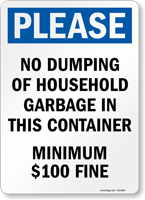Choose a place that is most conspicuous. Mounting No Dumping Signs near the dumpster or at the entrance of the dumpster area on your property can be a good idea to get attention. You can even spray or paint your “No Dumping” message anywhere using our reusable stencils. Even our adhesive polyester labels can be applied directly to the dumpsters.