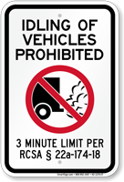Most no idling ordinances allow 3–5 minutes of idling before a violation occurs, though exact limits vary by location. Some school and hospital zones reduce this to 1–2 minutes. In cold or hot weather, exceptions may allow longer idling for temperature control. Signs like the 3-minute idling law sign help communicate clear local regulations.
