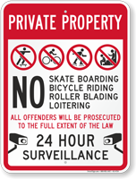 Use our selection of no skateboarding signs to keep skaters, bikers, and bladers from damaging your property.