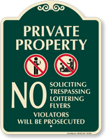 Deter unauthorized activities with effective warnings. No Trespassing and Soliciting Signs clearly spell out prohibitions, effectively forewarning potential violators.