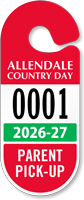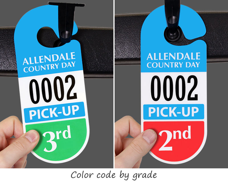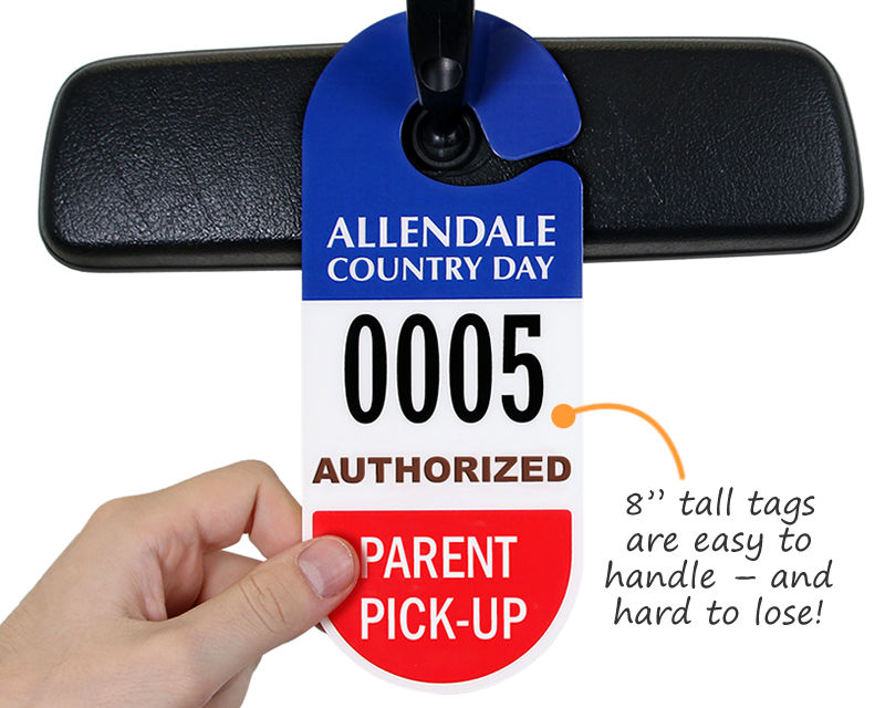 The most effective designs use large, bold numbering and bright colors that can be read from a distance. This high visibility allows staff to identify vehicles quickly and keep the dismissal line moving safely. See our full range of parent pick-up tags.