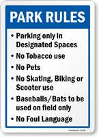 • • Every park has different set of rules. Choose from our large selection of Park Signs and find the ones you need for your park.