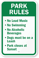 • • Every park has different set of rules. Choose from our large selection of Park Signs and find the ones you need for your park.