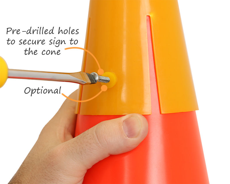 Standard traffic cones ranging from eighteen to twenty-eight inches tall work best with top signs. The universal base of the sign holder is specifically designed to fit snugly into the top opening of these standard cones, providing a highly stable and secure fit.