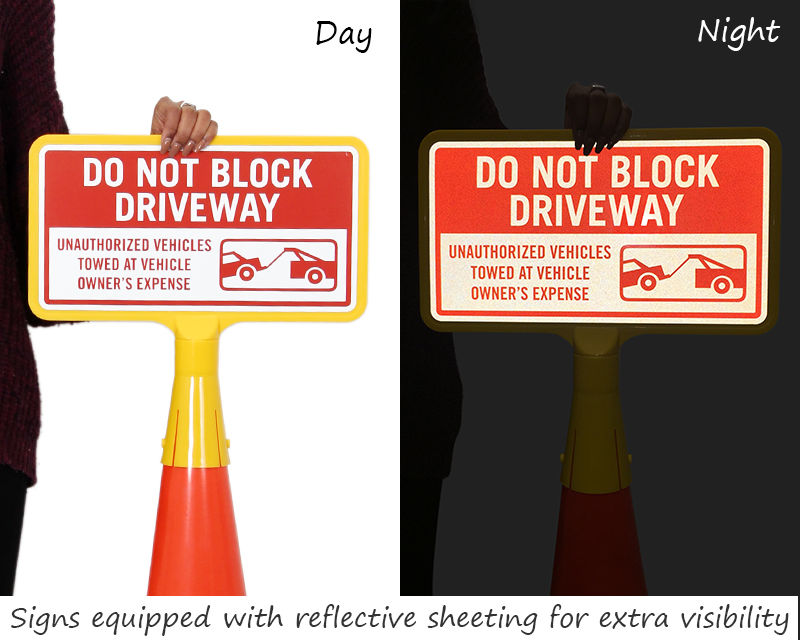 Yes, we offer highly reflective cone top signs specifically designed for night use. These premium signs utilize authentic 3M reflective sheeting, ensuring your temporary detour or parking full messages glow brilliantly when hit by vehicle headlights in very dark outdoor conditions.
