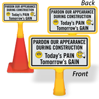Size: 8" x 15" Material type: Reflective “No-Tip” Traffic Cone Sign - Two Sides Printed