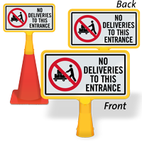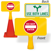 Size: 8" x 15" Material type: Reflective “No-Tip” Traffic Cone Sign - Two Sides Printed