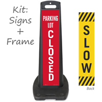 You can easily get temporary lot closed signs in a portable A-frame style. These heavy-duty plastic signs are perfect for temporary closures because you can carry them by the built-in handle, deploy them instantly, and fold them completely flat for easy storage.