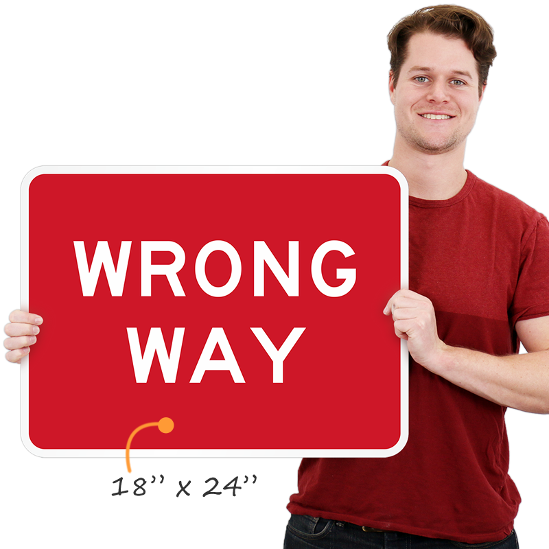 Directional Road Sign: WRONG WAY Learn More...