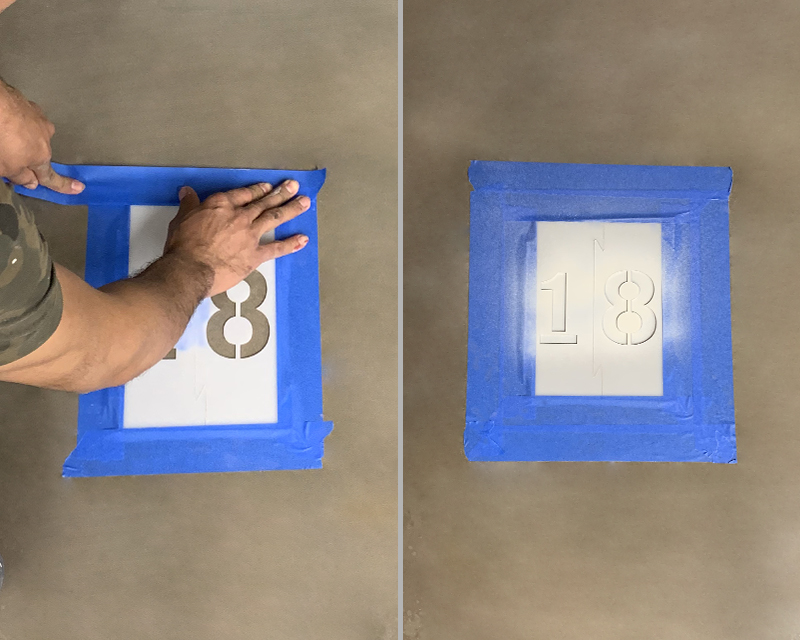 Choose a selection of interlocking numbers and letters using our stencil kit. Innovative design lets you align, connect, spray, and reveal your perfect sign.