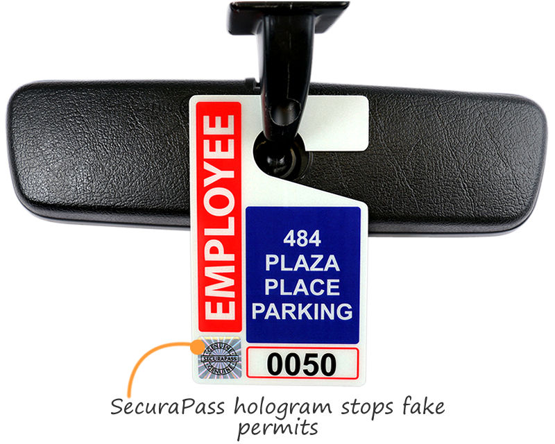 Never let anyone get by with a fake pass. SecuraPass™ parking tags and decals incorporate important security features like no-copy backgrounds, unique numbering, and holograms.